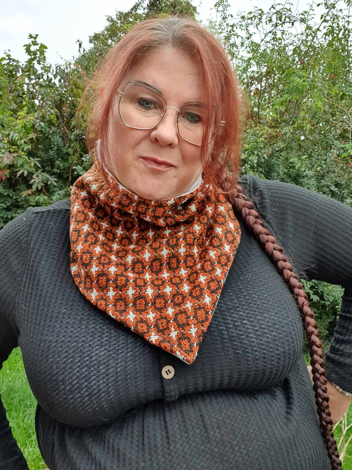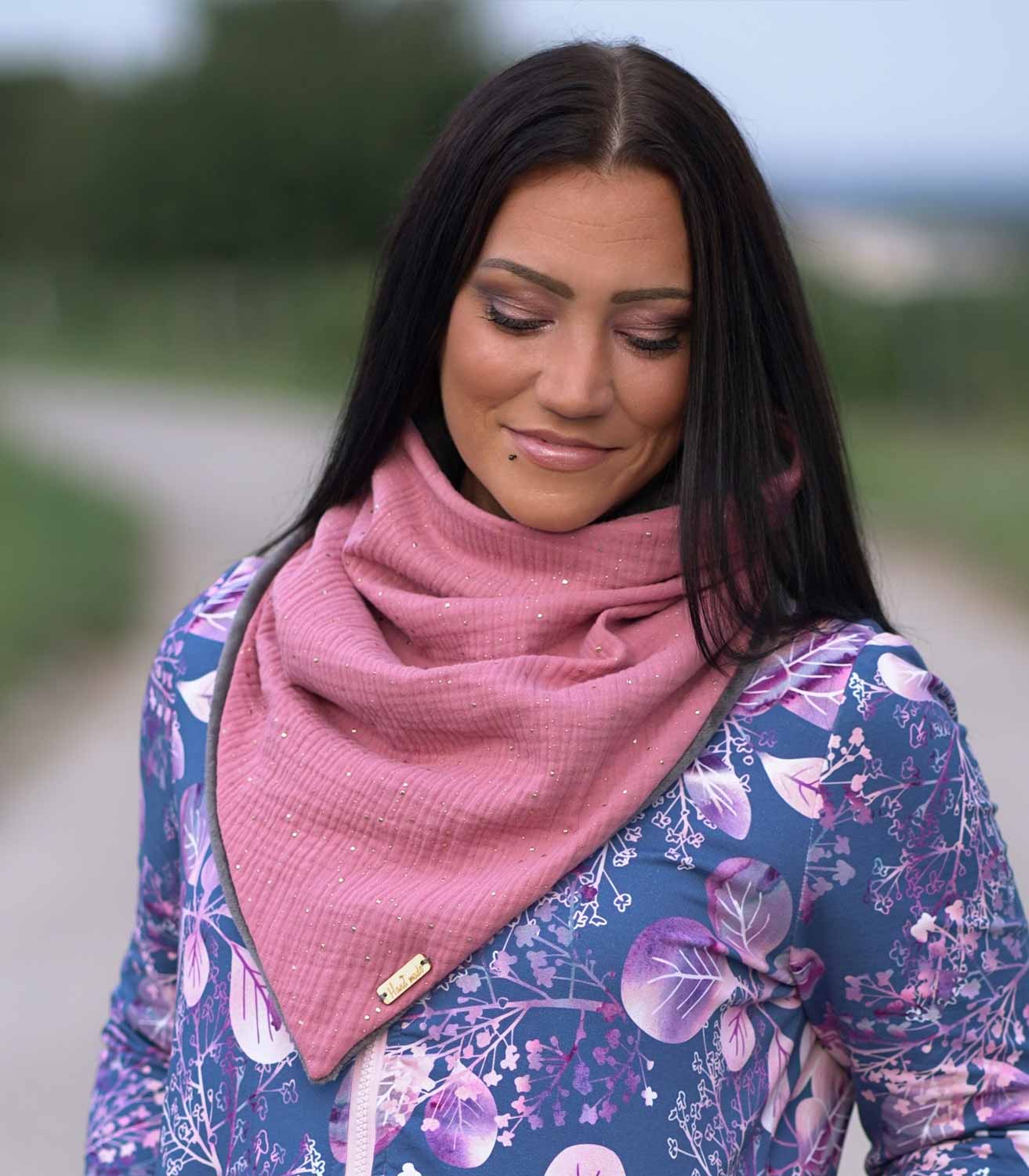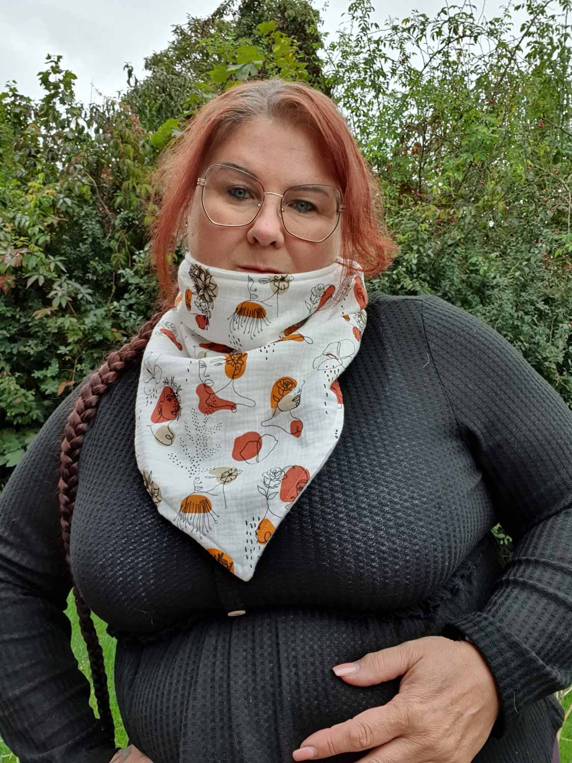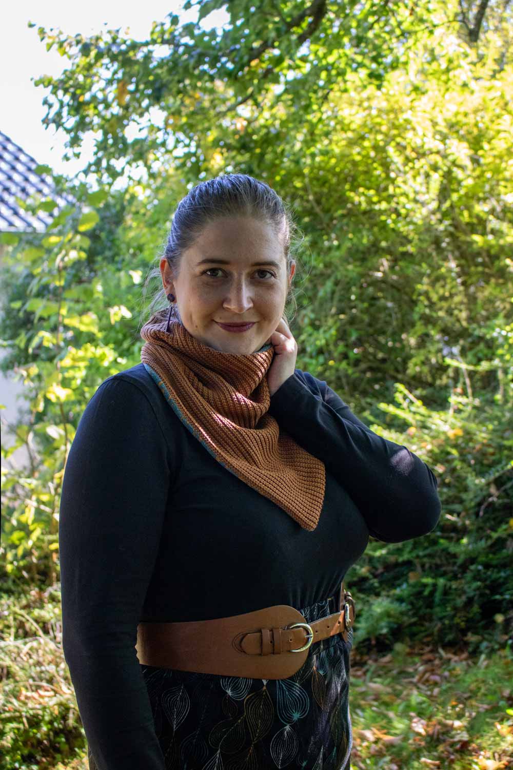 Dieser Schnitt bietet dir ein Dreieckstuch in Loopschalform, sodass der Dreiecksschal stehts an Ort und Stelle bleibt und nichts verrutscht und das in 2 Höhen und 2 Weiten.
